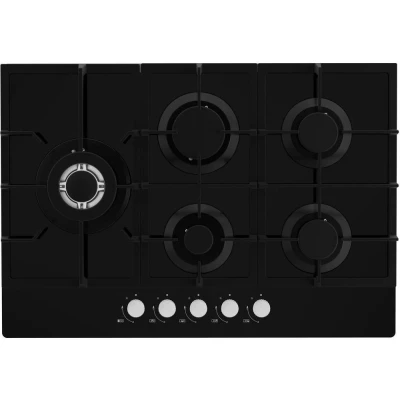 Amazon MarketplaceMODERN BLACK FINISH: Stylish glass surface adds a sleek and sophisticated touch to your kitchen. 5 VERSATILE BURNERS: Includes 1 wok burner, 1 rapid, 2 semi-rapid, and 1 simmer burner for precise and flexible cooking. AUTOMATIC IGNITION: Quick and easy start-up for seamless cooking experiences. FRONT DIAL CONTROL: Ergonomic controls provide effortless flame adjustment for each burner. 75 CM DESIGN: Spacious layout accommodates larger pots and pans, perfect for family cooking or entertaining.