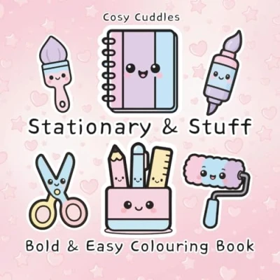 Stationary & Stuff Bold Easy Colouring Book: Cosy Designs for Teens, Adults Beginners,Cute Line Doodles Calm,Cosy Colour Moments,A Sweet ... Calm,Comfort Fun, Relax De stress,