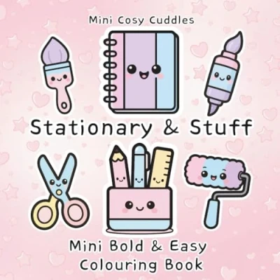 Stationary & Stuff Mini Bold Easy colouring Book: Cosy Designs for Teens, Adults Beginners,Cute Line Doodles Calm,Cozy ... Work Breaks, Small 6"x 6"