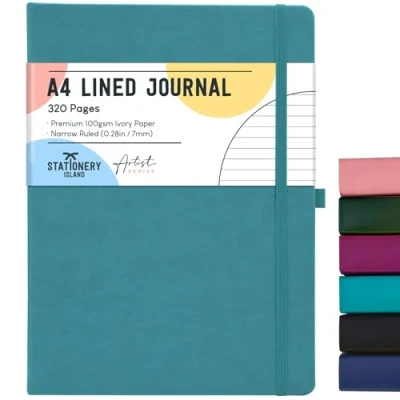 STATIONERY ISLAND A4 Lined Notebook, 320 Pages Thick Journal Ruled Hardcover with 100gsm for Writing, Working, Studying, Diary, Teal