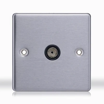 Status stainless steel TV socket with modern finish Status delivers style and functionality with this 1 gang television socket, built from durable brushed stainless steel. Ideal for wall-mounted televisions or entertainment setups, the clean design adds a contemporary touch to any room. Reliable connection for TV and signal reception Designed to support strong, stable TV signal transmission, this wall socket offers a consistent coaxial connection for both digital and analogue aerial inputs. Perfect for living rooms, bedrooms or media spaces requiring clear picture quality. 1 gang compact size for streamlined installation The single gang format offers a space-saving solution without compromising performance. Its minimalist profile makes it suitable for smaller areas while still providing full signal access wherever it’s installed. Screw through mounting for flush wall placement With screw through fixings, this socket ensures a secure, level fit on a variety of wall surfaces. Whether installed on plasterboard or solid walls, it provides a tidy finish with no gaps or protrusions. Brushed steel appearance for coordinated interiors The brushed stainless steel faceplate blends seamlessly with modern electrical fittings and appliances, giving your TV area a cohesive, polished look. It’s the perfect upgrade for design-conscious home improvement projects.