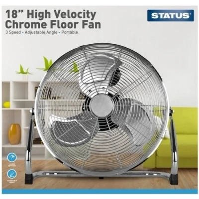 from Status (Model: S18CFLOORFAN1PKB) An Ideal cooling solution for the summer from Status International! A 18 diameter, high velocity floor fan in a chrome finish that features an adjustable tilt mechanism for better control and precise airflow. The fan has 3 speed settings and is suitable for both domestic and commercial use in office environments. A portable method of room cooling, where air conditioning may not be plausible. Technical Specifications Adjustable: Yes Cable Length: 1.8M Fan Diameter: 450 mm Finish: Chrome Manufacturer: Status Speed Settings: 3 Voltage: 220 - 240 Volt