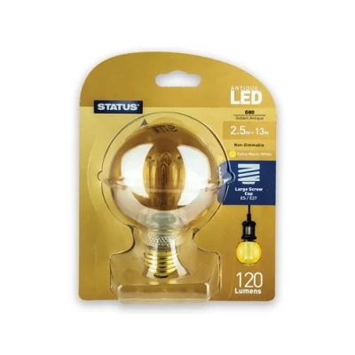 Status 2.5w = 20w = 120 lumens LED G80 Globe ES RN1 Antique Golden