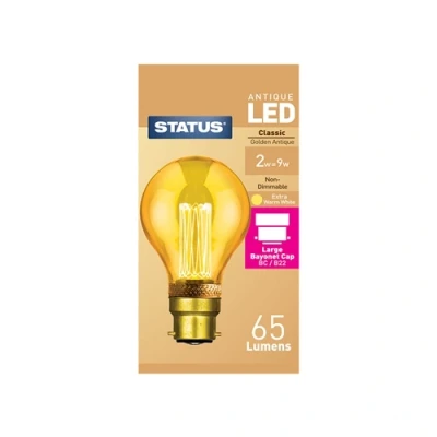 Status 2w = 9w = 65 lumens LED GLS BC RN1 Antique Golden