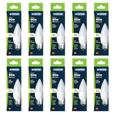 7.5w = 60w = 806 lumens - Status - LED - Candle - E27 - PA - Cool White - 1 pk box - in White CDU