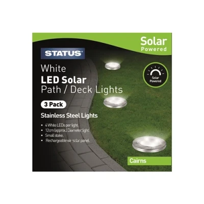 Status Cairns 12cm Diameter White 4 LED Solar Deck Light Stainless Steel, 3 Pack