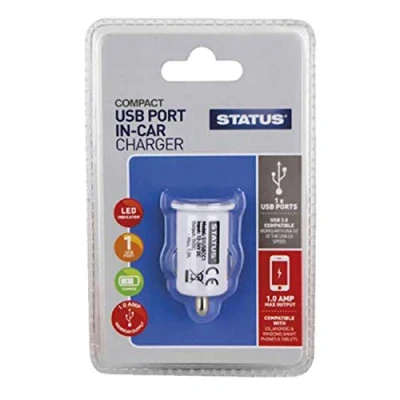 Status 1 Port USB Car Charger White 1.0mA These USB Car chargers can keep your electronics on power on your trip by charging in your car through the car's cigarette lighter. Status International (UK) Ltd is a family-owned business based in Cleckheaton, near Bradford in West Yorkshire. With a heritage going back over 20 years, it was originally founded as a plug manufacturer based in the UK nearly 40 years ago. The company has a very clear philosophy about providing goods of the highest specification and standards and has very strong links with West Yorkshire Trading Standards. Their large and diverse range includes trailing sockets, cable reels, heaters, cooling fans, small domestic appliances, electrical accessories, and much more. Ideal for travel, home or office Offers fast, efficient charging 1000mA charge Compatible with all devices that require a USB charge Fits into the cigarette lighter of any vehicle Operated simple, plug, and play The best choice and a requisite thing for