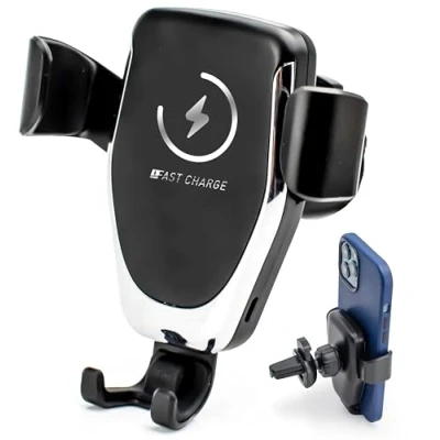 FAST 15 W WIRELESS POWER Delivers up to 15 W for rapid top-ups, recognising compatible iPhone, Samsung and Pixel models and adjusting current automatically so you arrive with batteries ready for meetings or long days out. AUTO GRIP SENSOR ARMS Infrared sensor opens cradle when a phone approaches, then clamps firmly to prevent wobble over potholes and sharp turns; press the side button for one-handed release at journey’s end. 360° ADJUSTABLE VENT MOUNT Ball joint rotates portrait or landscape, keeping navigation in view without blocking the windscreen; silicone prongs lock to horizontal or vertical vents while shielding trim from scratches. USB-C POWER LEAD INCLUDED One-metre braided cable connects cleanly to a dash adapter or power bank, letting you route wiring around consoles and eliminate dangling cords that tangle gear sticks. CASE-FRIENDLY SAFETY CHIP Charges through cases up to 5 mm and features over-current, over-heat and foreign-object detection, ensuring cooler, safer charging on commutes or cross-country road trips.