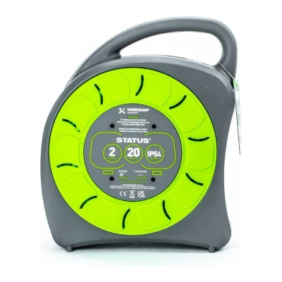 - Power up a couple of devices at once with this 2-socket extension cable reel - No more tug of war with short cables - 20 m long cable means easily roll it out for outdoor chores like lawn mowing or car hoovering - Its IP54 rating and rubber seals will protect the sockets from light drizzle - Worried about your devices getting fried? Its thermal cutout keeps everything cool and safe - Move it around effortlessly with its carry handle, whether you need it at home or in the garden