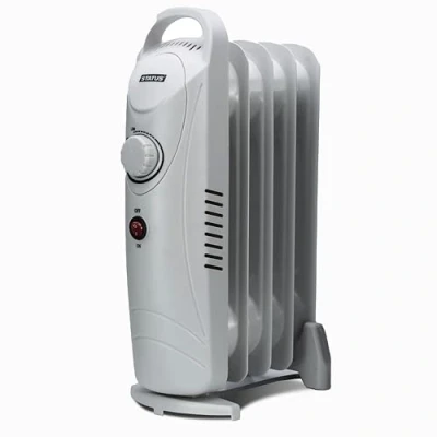 COMPACT 500W HEAT BOOST Sealed thermal oil stores warmth & releases a steady flow that takes the chill off desks, nursery corners & camping pods faster than fan heaters while staying whisper-quiet for work, sleep or study comfort. 5-FIN SLIM PROFILE Narrow 130mm body & integrated handle slide between furniture, fitting snugly under desks or beside sofas; at just 3.5kg it lifts easily room-to-room or packs into caravans for off-season weekend breaks. ADJUSTABLE THERMOSTAT Dial lets you fine-tune temperature then cycles power to hold comfort automatically, trimming energy use & preventing over-heating compared with cheap plug-in convectors that run full blast non-stop. BUILT-IN SAFETY CUT-OUTS Tip-over switch & overheat sensor shut the 230V element instantly if knocked or blocked, giving peace of mind for busy family homes, student digs & pet-friendly rentals; cable tidy keeps leads neat. LOW-NOISE, ALL-NIGHT USE Fan-free design means no whirring blades or glowing coils, making the radiator ideal for bedrooms & baby rooms; add it under laundry racks to speed drying without the moisture of gas heaters.