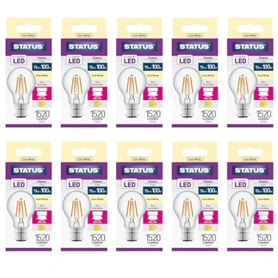 Status Pack of 1 x 11watt Equivalent to 100w Filament GLS LED BC B22 Bayonet Cap Clear Cool White Light Colour 4000k
