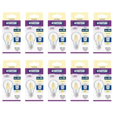 Status Pack of 1 x 11watt Equivalent to 100w Filament GLS LED ES E27 Screw Cap Clear Cool White Light Colour 4000k