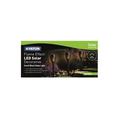 Status Pambula 7.5cm Dancing Fire Flame 12 x LED Solar Stake Light Black, 3 Pack