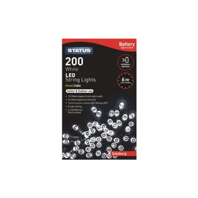 Status Salzburg 200 White LED Indoor/Outdoor Battery Operated String Festive Lights