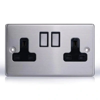 Status stainless steel quality with dual socket design Status delivers reliability and sleek style with this double switched wall socket, built from brushed stainless steel for durability and a clean, modern look. Its strong faceplate resists scratches, marks and daily wear, ideal for busy homes, offices or kitchens. Twin 13 amp outputs for high-demand use This 2 gang socket offers dual 13 amp ports, providing reliable power for multiple devices at once. Suitable for powering appliances, chargers, televisions or home office gear, it ensures safe, stable energy flow in both domestic and commercial environments. Dual independent switches for flexible control Each socket includes its own rocker switch, allowing independent control over connected electronics. The switches offer a precise, tactile response, making it easy to manage energy use while enhancing safety and convenience in any room. Screw through fitting for sturdy, easy wall mounting Fitted with screw through fixings, this wall socket offers quick, secure installation on plasterboard, wood or masonry. Its flush-fit finish creates a professional appearance that blends into any interior without protrusion or visible fixings. Modern brushed finish with sleek symmetrical styling Designed with a brushed steel faceplate and clean lines, this double gang socket complements contemporary spaces with ease. The symmetrical layout offers a balanced look, making it a stylish yet functional upgrade over traditional plastic fittings.