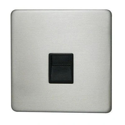 Screwless Stainless Steel Single Telephone Outlet Black Insert Wall Plate, Manufacturer: Status