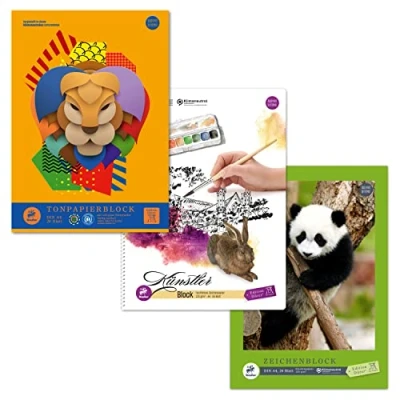 Staufen Artist set DIN A4 with 3 high-quality paper pads: Staufen Dürer drawing pad, artist pad and coloured paper pad Dürer drawing pad with 20 sheets of 120 g/m² paper, college pad with 50 sheets of 120 g/m² blank artist paper Coloured paper pad with 20 sheets of 130 g/m² in 10 assorted colours for a variety of craft projects Each pad offers different possibilities for creative design with a first-class paper quality and supports various techniques such as painting, drawing, crafting, paper cutting and much more. Ideal for children, students and artists who want to let their creativity run wild