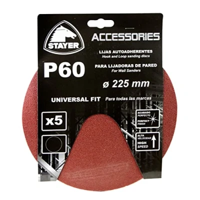Set of 5 professional sanding discs with 60 grit for LP700/710E/1000 Flexible design Quality/Durability, Manufacturer: Stayer