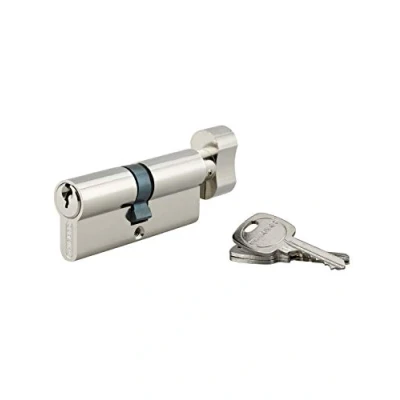 STD Profile Button Lock Cylinder 40 x mm Security System 1 Entry Brass Nickel Finish for Entrance Door Made in France Comes with 3 Notched Keys THIRARD