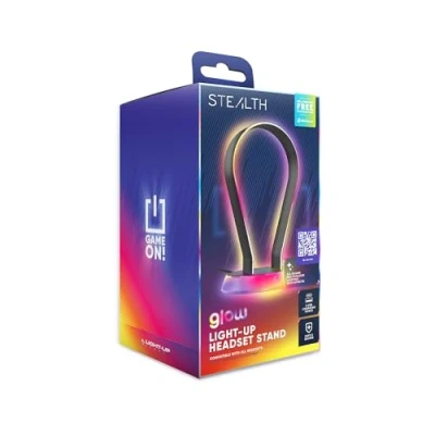STEALTH Gaming Light Up Charging Headset Stand Glow Black, USB Powered, Compatible with Most Headsets.