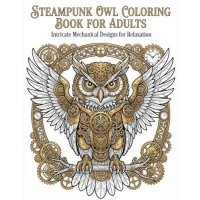 Steampunk Owl Coloring Book for Adults: Intricate Mechanical Designs Relaxation and Stress Relief