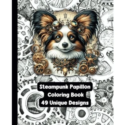 Steampunk Papillon Dog Adult Coloring Book 49 Unique Designs