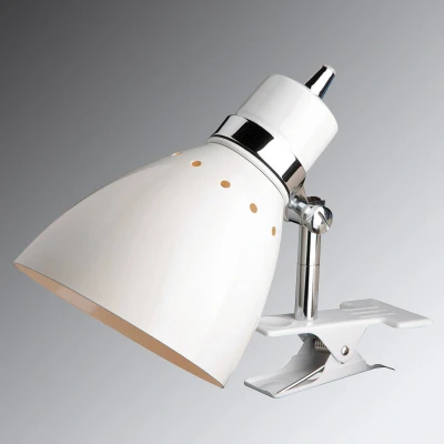 Timelessly beautiful Spring clamp light - rotatable and swivelling The chic Spring clamp light offers a high degree of convenience and flexibility, as it can be clamped to a table top, shelf or even the back of a bed in no time at all, where the direction of light can be varied. The design also plays an important role here, as the classic shade design combined with the shiny chrome metal ring that surrounds the shade gives it a decidedly modern and timeless look. It is supplied with a 172 cm cable including switch. Energy-efficient energy-saving bulbs or LED lamps can also be used.
