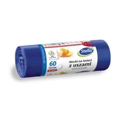 STELLA garbage bags are made from recycled plastic waste regranulate and are recyclable film thickness: 16 µm closure: ears film type: HDLD granulate