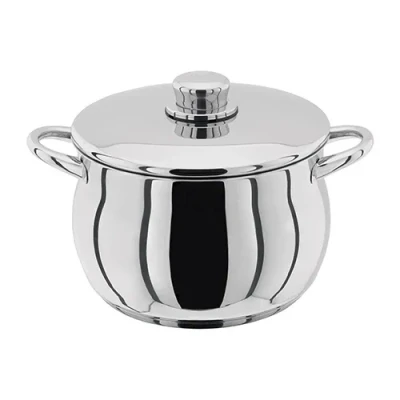The Stellar 1000 Classic 22cm Stockpot boasts a timeless domus shape and finish, making it suitable for both modern and traditional kitchens. Constructed from high-quality mirror-polished 18/10 stainless steel, this 22cm Stockpot is designed for everyday use, providing durability and ideal for serving from the hob to the table.Its thick 'hot forged' base ensures even heat distribution without internal hot spots, allowing for efficient and consistent cooking on any hob type, including induction. Oven safe up to 210°C and dishwasher compatibility, this pan offers convenience and versatility.Dimensions: 17.5(H) x 23(W) cm. Capacity: 4.4L.Stellar lifetime pan guarantee.Please Note: Due to the re-branding of Stellar 1000 Range to Stellar Classic, packaging may vary.