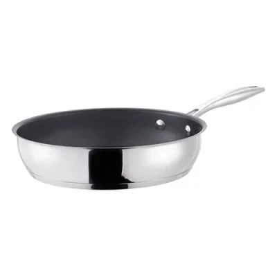 AmazonUnleash Culinary Magic: Elevate your cooking with our 7000 26cm Frying Pan. Crafted for flavour enthusiasts, it empowers you to perfect signature dishes and explore new flavours with every experiment. Precision Heat Distribution: Experience consistent and efficient cooking with our high-conductivity base and responsive triple-layer non-stick coating. Say goodbye to hotspots and hello to evenly cooked meals. Perfect for eggs, omelettes, pancakes, steak and sautéed vegetables. Elegance in Design: Designed to complement any kitchen, its polished steel and sleek straight sides add a touch of style to your cooking space. Elevate your kitchen aesthetics without compromising on performance. Built to Last: Featuring strong cast steel handles and an easy-clean polished steel finish, this pan is not only a pleasure to cook with but also easy to maintain, ensuring it stands the test of time. Versatile Cooking Companion: From stovetop to oven, our pan is your all-in-one cooking solution. Oven-safe, all hobs and induction-ready, it adapts to your culinary needs, making it a must-have for any home chef.
