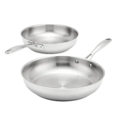 This Stellar Profile 2 Piece Fry Pan Set includes a 24cm uncoated stainless steel frying pan and a 28cm uncoated stainless steel frying pan.Both of these frying pans are made from high quality 18/10 stainless steel which are suitable for all hob types, like gas, halogen, ceramic, solid plate and induction. The frying pans are oven-safe up to 240°C, making them ideal for crisping and browning directly in the oven.These pans deliver even heat distribution for efficient cooking and are free from PFOA and PTFE, ensuring healthier meals and greater peace of mind.Dishwasher safe for easy and convenient cleaning.Complete with a Stellar manufacturer's lifetime guarantee.