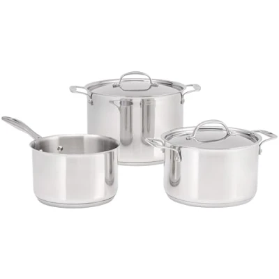Harts of SturUpgrade your kitchen with the Stellar Profile 3 Piece Mixed Pan Set, designed for precision, durability, and effortless style. This versatile set includes an 18cm open saucepan, a 20cm casserole, and a 24cm stockpot—perfect for everyday cooking and entertaining.Crafted from premium 18/10 stainless steel, each pan features a high-conductivity base for fast, even heat distribution across all hob types, including induction The pans are also oven safe up to 240°C. Internal measuring guides save time and reduce the need for extra utensils, while strong cast steel handles provide secure handling. The polished steel finish is easy to clean and built to last.Perfect for boiling, simmering, and creating hearty dishes, this set combines professional performance with timeless design.Dishwasher safe for easy cleaning, though hand washing recommended.Supplied with a manufacturer's lifetime guarantee.