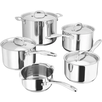 Stellar Profile Set of 5 Stainless Steel Pans 28cm 7.5L Stockpot, 20cm, 18cm, 14cm Saucepans with Lids, Milk Pan, Induction Ready