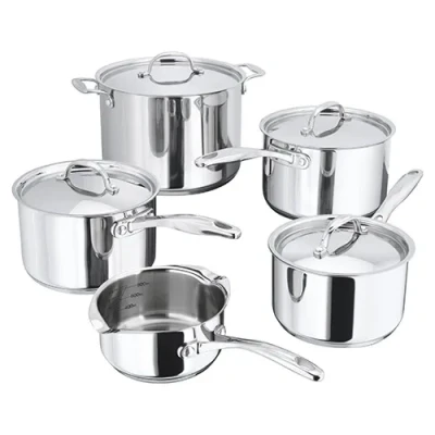 Introducing the Stellar 7000 Profile 5 Piece Set a remarkable addition to your kitchen that combines functionality and elegance. Crafted from high-quality 18/10 stainless steel, these pans are designed to withstand temperatures up to 240°C, making them oven-safe for versatile cooking options. The sleek and modern straight-sided edges add a touch of sophistication, ensuring these pans seamlessly complement any kitchen design, whether it's a contemporary or classic space.Not only do they boast an eye-catching design, but they also offer practicality with dishwasher-safe convenience, making cleanup a breeze. The strong cast steel handles provide a sturdy grip, enhancing the overall durability of this cookware and the internal measurement guides and easy draining features further enhance the user-friendly design, making every culinary adventure a seamless and satisfying encounter.What sets the Stellar 7000 Profile 5 Piece Set apart is their outstanding performance in the kitchen. The high conductivity base ensures consistent heat distribution, spreading evenly across the pan for stable and efficient cooking results.Includes a Stellar lifetime guarantee.The Stellar 7000 Profile 5 Piece Saucepan Set contains 14cm milk pan 1L, 16cm saucepan 1.5L, 18cm saucepan 2.5L, 20cm saucepan 3.1L, and a 24cm stockpot 7.5L.Please Note: Due to the re-branding of Stellar 7000 Range to Stellar Profile, packaging may vary.