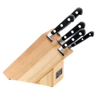 These knives come elegantly housed in a contemporary beech wood knife block, providing both a stylish presentation and practical storage solution for your kitchen.