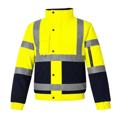 Step Ahead Mens Hi Vis Visibility Two Tone Waterproof Bomber Jacket Safety Work Wear Viz Yellow/Navy, Orange/Navy (Yellow/Navy, M)