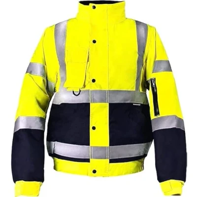Step Ahead Personalised Mens Hi Vis Visibility Two Tone Waterproof Bomber Jacket Safety Work Wear Viz Yellow/Navy, Orange/Navy (Yellow/Navy, L)