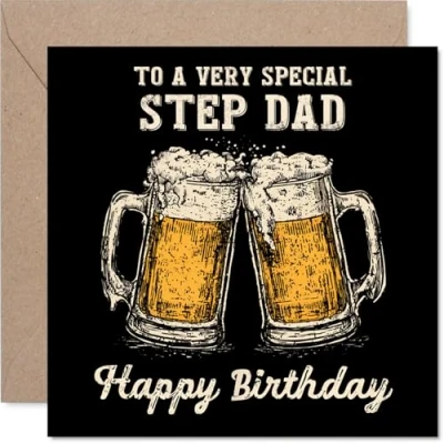 Step Dad Birthday Card Bday Beer Happy for from Son Daughter, 145mm Cheers Greeting Cards