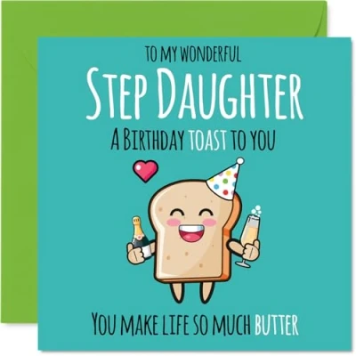 Step Daughter Birthday Card Cute Toast Happy for from Dad Mum, 145mm Bday Greeting Cards