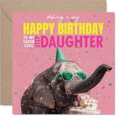 Step Daughter Birthday Card Elephantastic Happy for from Dad Mum, 145mm funny elephant Bday Greeting Cards