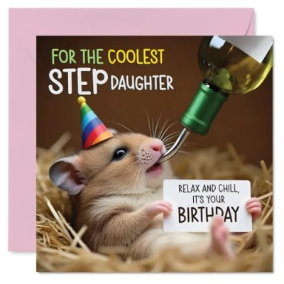 Step Daughter Birthday Card Ham somely Happy for from Dad Mum, 145mm Hamster Bday Greeting Cards