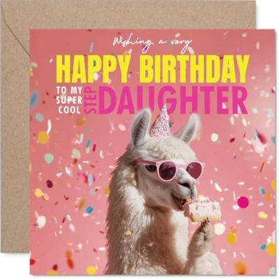 Step Daughter Birthday Card Llam azing Cake Happy for from Dad Mum, 145mm funny llama Bday Greeting Cards