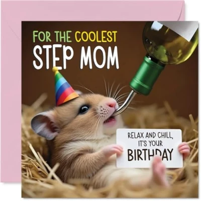 Step Mom Birthday Card Ham somely Happy for from Son Daughter, 145mm Hamster Bday Greeting Cards