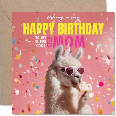 Step Mom Birthday Card Llam azing Cake Happy for from Son Daughter, 145mm funny llama Bday Greeting Cards