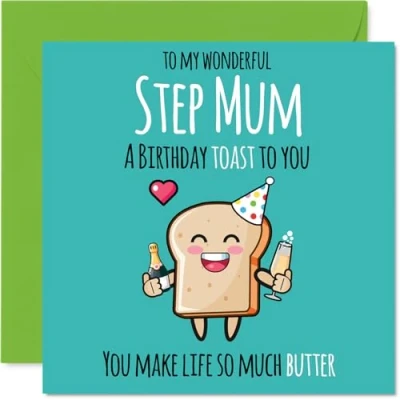 Step Mum Birthday Card Cute Toast Happy for from Son Daughter, 145mm Mothers Day Greeting Cards