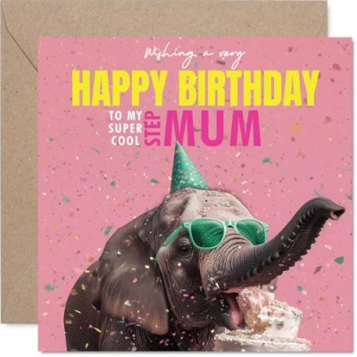 Step Mum Birthday Card Elephantastic Happy for from Son Daughter, 145mm funny elephant Bday Greeting Cards