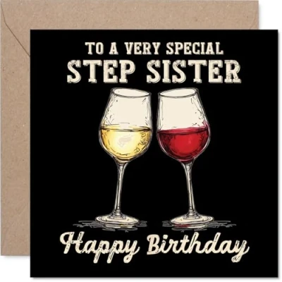 Step Sister Birthday Card Bday Wine Happy for from Brother Sibling, 145mm Greeting Cards