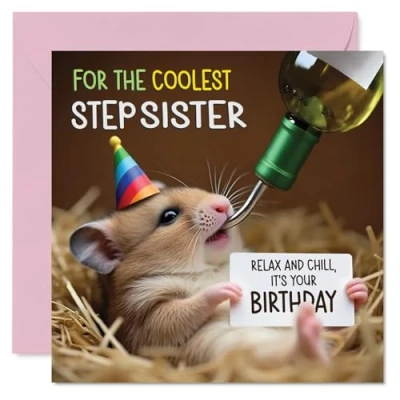 Step Sister Birthday Card Ham somely Happy for from Brother Sibling, 145mm Hamster Bday Greeting Cards