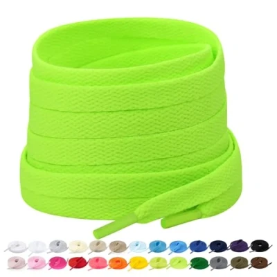 Stepace 2 Pairs Flat Trainer Shoe Laces 5/16" Wide for Sneakers Sports Athletic Shoes 15 Colors Shoelaces Neon Green 160