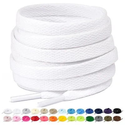 Stepace 2 Pairs Flat Trainer Shoe Laces 5/16" Wide for Sneakers Sports Athletic Shoes 15 Colors Shoelaces White 100
